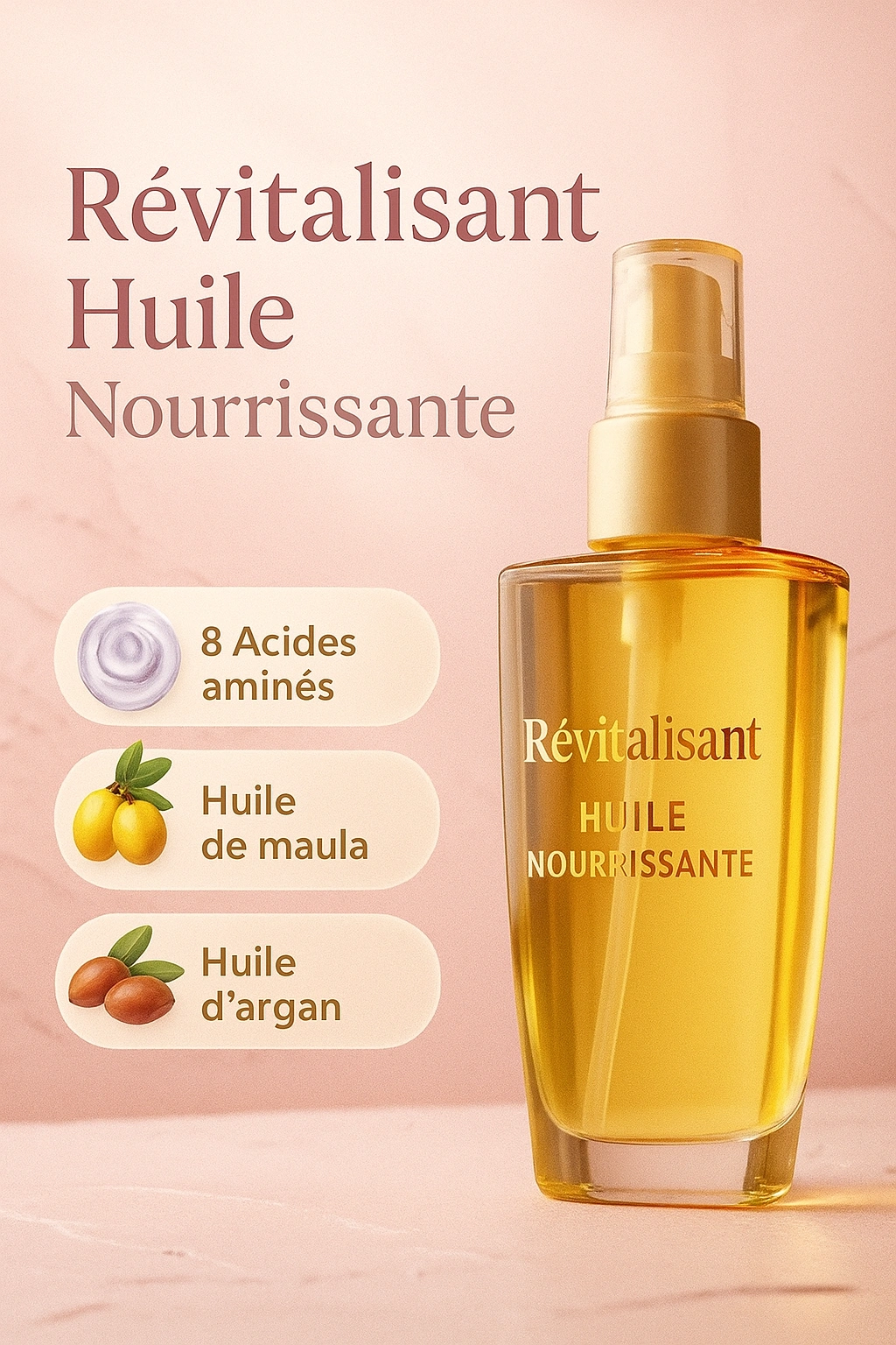 Réparez et sublimez vos cheveux secs et abîmés avec l’huile d’argan, huile de marula et l’essence de camélia.